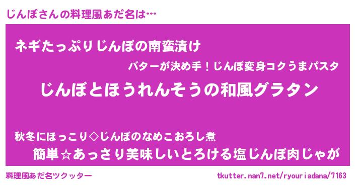| 女子向けラノベタイトル風あだ名 | 『じんぼの玉の輿計画!』『じんぼ恋絵巻』 |