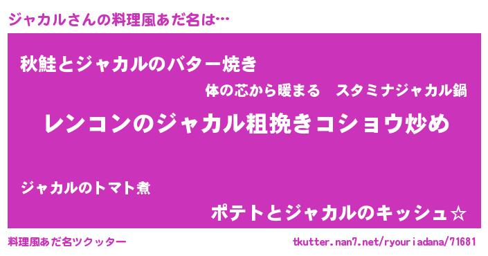 | 意味不明あだ名 | 『自称ジャカル』『永久保存ジャカル』 |