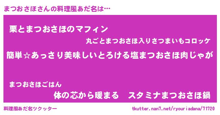 | 意味不明あだ名 | 『永久保存まつおさほ』 |