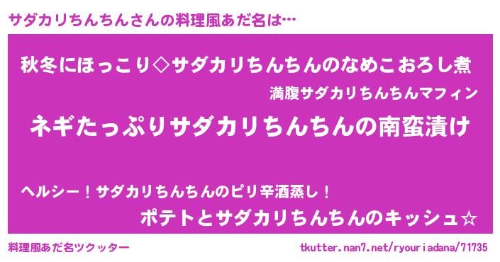 | 男性向けラノベタイトル風あだ名 | 『サダカリチンチンアートオンライン』 |