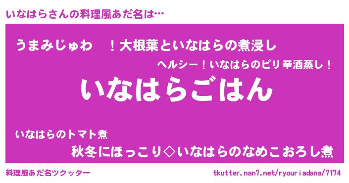 | 意味不明あだ名 | 『なめこ科いなはら属』『自称いなはら』 |