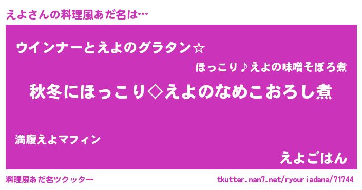 | 女子向けラノベタイトル風あだ名 | 『横柄えよと宰相陛下』『えよ伯爵の花嫁』 |