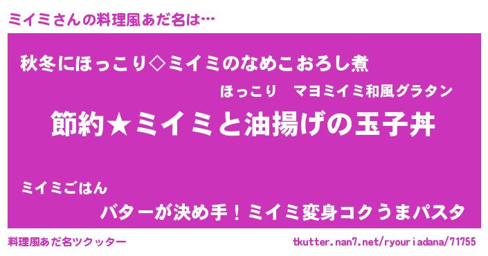 | ヒーロー風カッコイイあだ名 | 『スーパーミイミ』『天空の使者ミイミ』 |