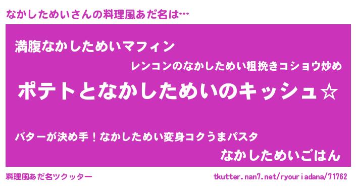 | 男性向けラノベタイトル風あだ名 | 『なかしためいの嫁は女の子じゃないと思った?』 |
