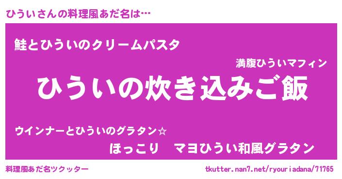| ヒーロー風カッコイイあだ名 | 『慈愛の使者ひうい』『仮面ヒウダー』 |