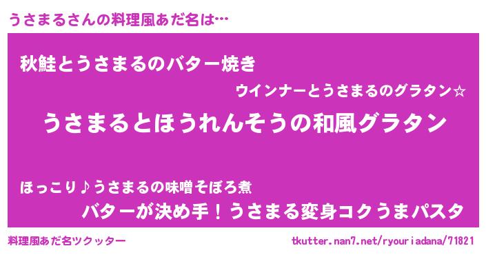 | 胡散臭い通販商品みたいなあだ名 | 『来世でも幸せになれる水素水…その名も「うさまる」』 |