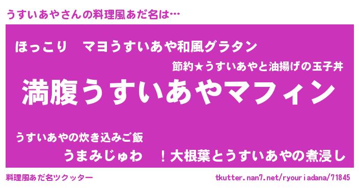 | 男性向けラノベタイトル風あだ名 | 『うすいあやという概念が存在しない退屈な世界 』 |