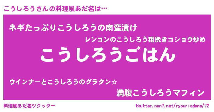 | 胡散臭い通販商品みたいなあだ名 | 『必ず成功するブレスレット…その名も「こうしろう」』 |