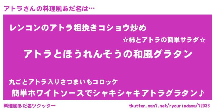 | ポケモン風あだ名 | 『アトキング』『アトセウス』 |