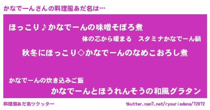 | ヘコむあだ名 | 『かなもー』『なまこ酢』『かなお』 |