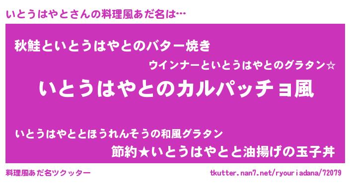 | ヒーロー風カッコイイあだ名 | 『仮面イトダー』『ネオイトウハヤト』 |