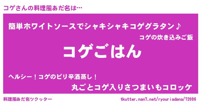 | 意味不明あだ名 | 『エリンギ科コゲ属』『自称コゲ』 |