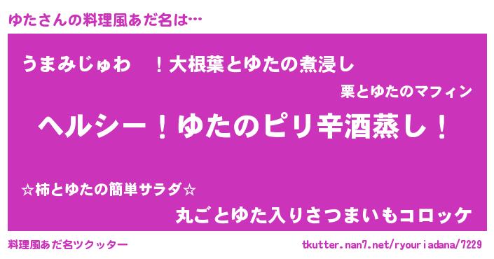 | 男性向けラノベタイトル風あだ名 | 『Re:ゆたから始める異世界生活』 |