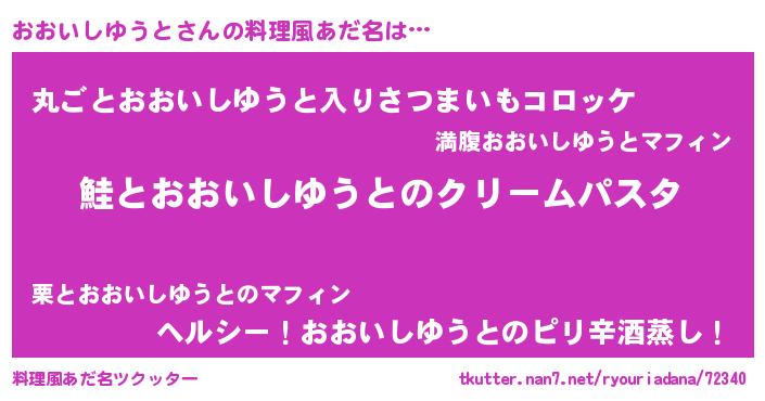| 男性向けラノベタイトル風あだ名 | 『ノーゲーム・ノーオオイシユウト』 |