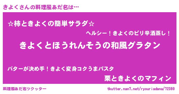 | 意味不明あだ名 | 『なめこ科きよく属』『自称きよく』 |