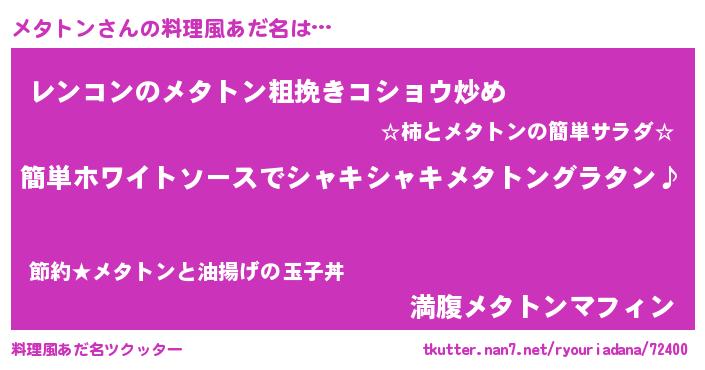 | ヘコむあだ名 | 『メタを』『メタトン(笑)』 |