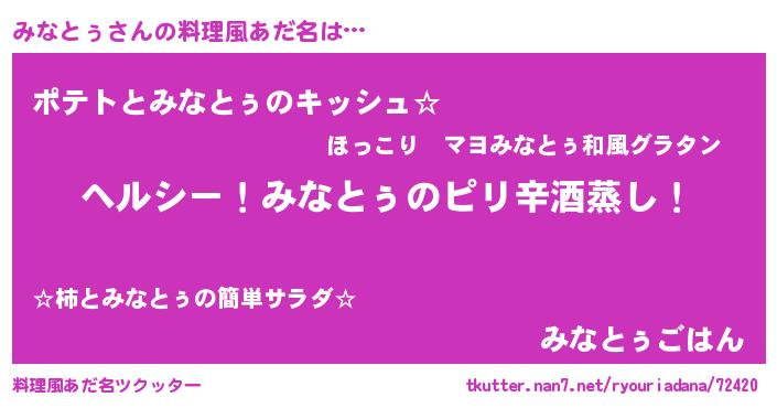 | 男性向けラノベタイトル風あだ名 | 『Re:みなとぅから始める異世界生活』 |