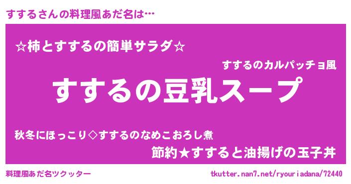 | 胡散臭い通販商品みたいなあだ名 | 『信頼と実績のサプリメント…その名も「すする」』 |
