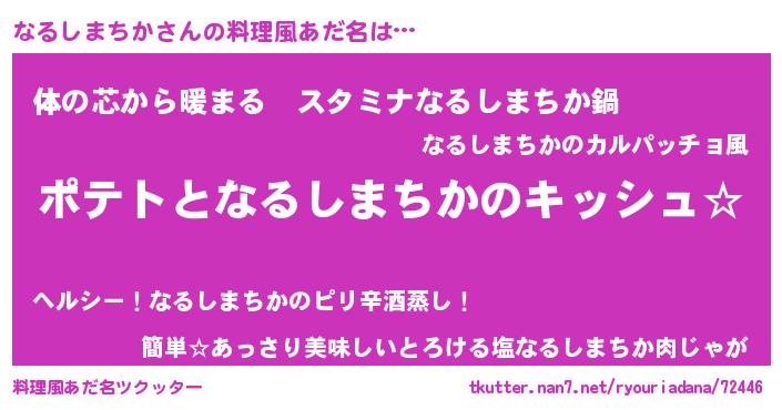 | 胡散臭い通販商品みたいなあだ名 | 『伝統あるサプリメント…その名も「なるしまちか」』 |