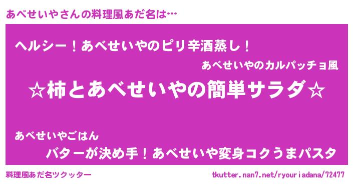 | 意味不明あだ名 | 『自称あべせいや』『ペロリンあべせいや』 |
