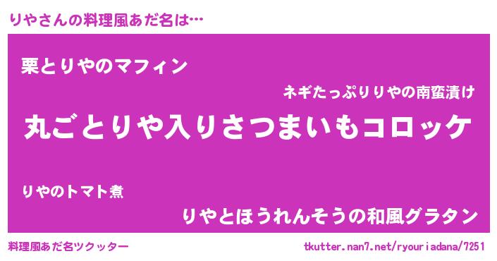 | ヘコむあだ名 | 『りやもー』『りや(苦笑)』『りやを』 |