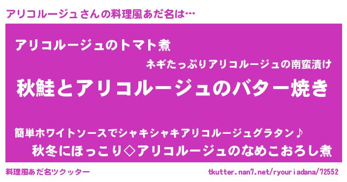 | 可愛いあだ名 | 『アリコルージュママ』『アリちゅっちゅ』 |