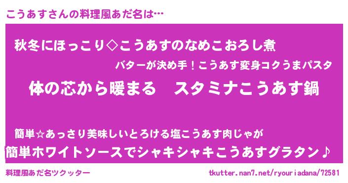 | 意味不明あだ名 | 『こうあすフォーエバー』 |