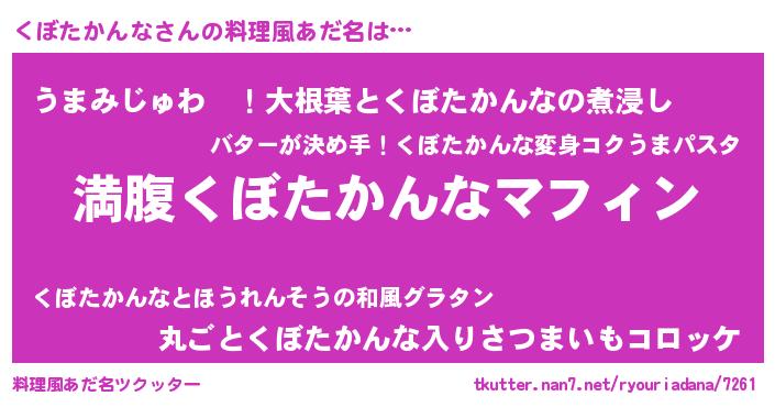 | 胡散臭い通販商品みたいなあだ名 | 『絶対に幸福をもたらす水素水…その名も「くぼたかんな」』 |