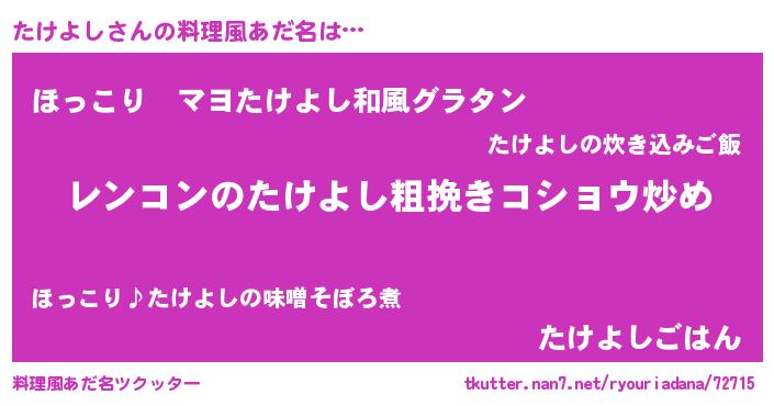 | 女子向けラノベタイトル風あだ名 | 『たけよしなんてお断りですっ。』 |