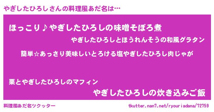 | ヘコむあだ名 | 『やぎしたひろし(遠い目)』『やぎふぇ~』 |