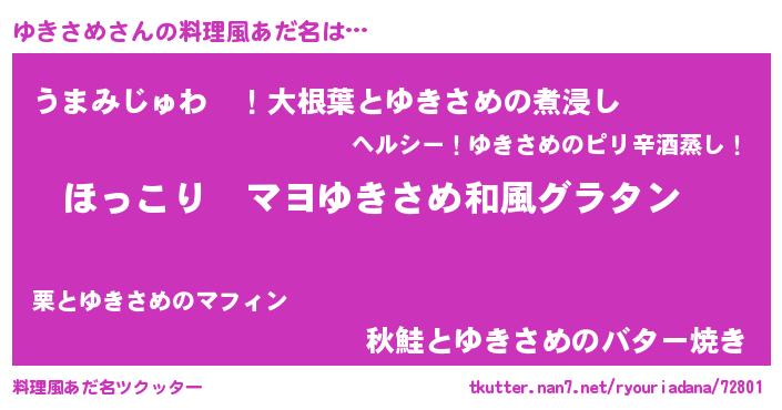 | ヒーロー風カッコイイあだ名 | 『仮面ユキダー』『ウルトラゆきさめマン』 |