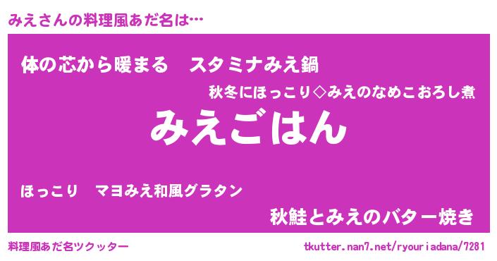 | ヒーロー風カッコイイあだ名 | 『ウルトラみえマン』『ネオミエ』 |