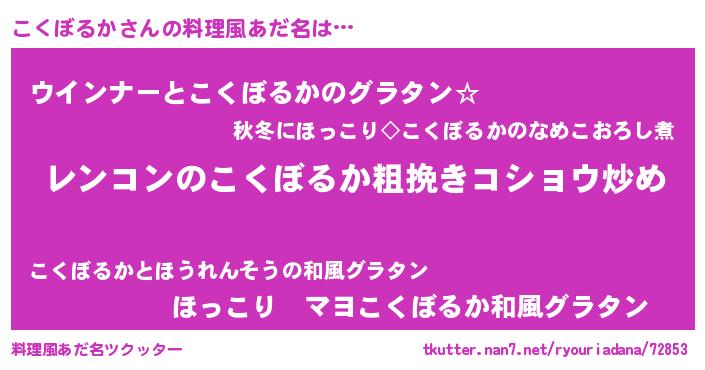 | 意味不明あだ名 | 『自称こくぼるか』『ペロリンこくぼるか』 |
