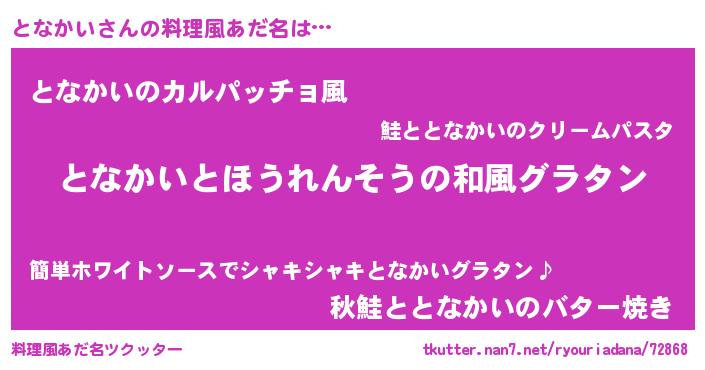 | ヘコむあだ名 | 『となかい(笑)』『となっ子』 |