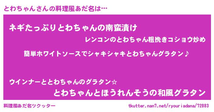 | ヘコむあだ名 | 『とわっぺ』『とわにゅー』 |