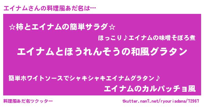 | 女子向けラノベタイトル風あだ名 | 『エイナムの玉の輿計画!』 |