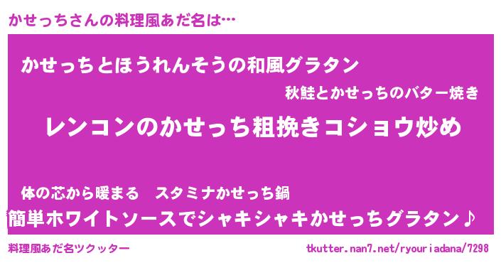 | 意味不明あだ名 | 『自称かせっち』『つくし科かせっち属』 |