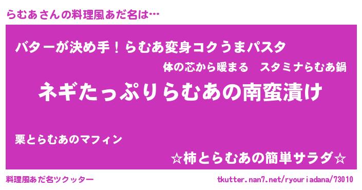 | ポケモン風あだ名 | 『ラムチュウ』『ラックウザ』 |