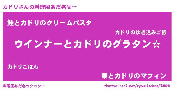 | ヘコむあだ名 | 『豆乳』『カドリ(苦笑)』『カドにー』 |
