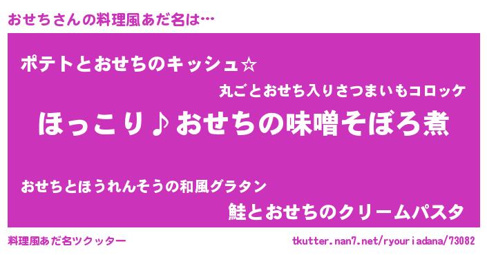| 男性向けラノベタイトル風あだ名 | 『おせちの憂鬱』 |