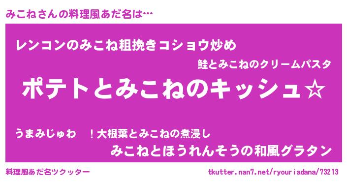 | ヘコむあだ名 | 『みこっ子』『牛乳』『みこね(苦笑)』 |