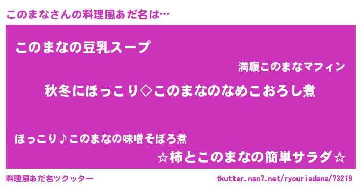 | 意味不明あだ名 | 『とにかく怪しいこのまな』 |