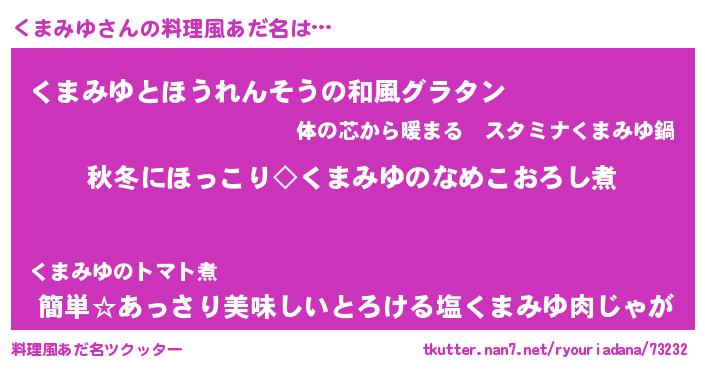 | 意味不明あだ名 | 『ニラ科くまみゆ属』『永久保存くまみゆ』 |