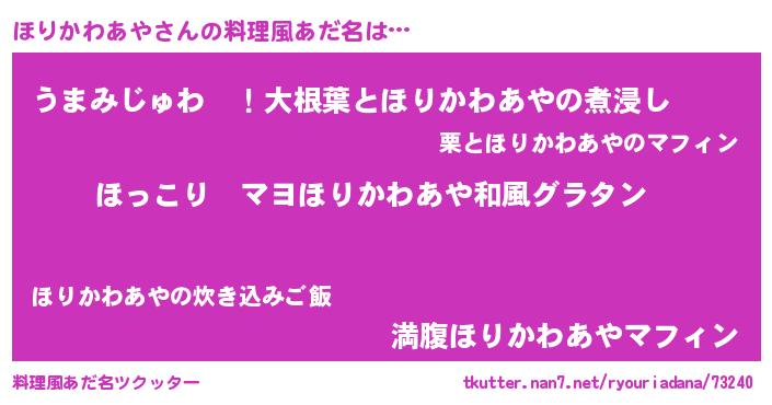| ヘコむあだ名 | 『酢こんぶ』『ほりかわあや(笑)』 |