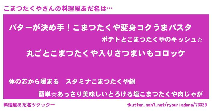 | 意味不明あだ名 | 『住所不定無職こまつたくや(40歳)』 |