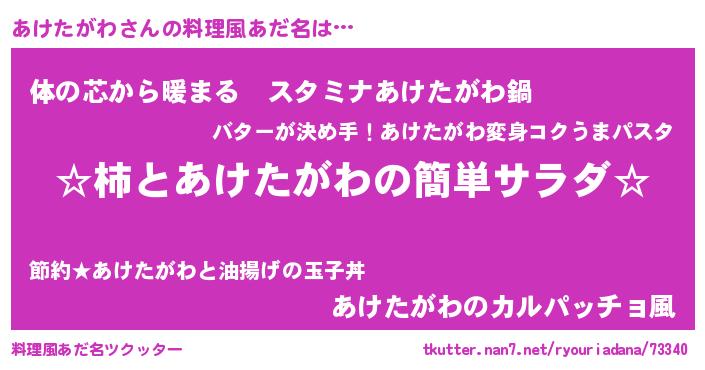 | 男性向けラノベタイトル風あだ名 | 『緋弾のアケタガワ』『あけたがわの憂鬱』 |