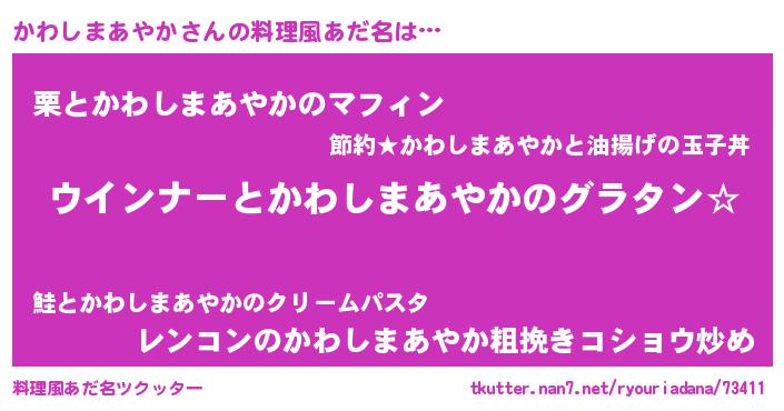 | 肩書あだ名 | 『かわしまあやか国家主席』 |