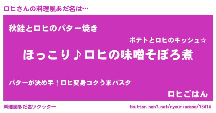 | ポケモン風あだ名 | 『ロヒチュウ』『ゼニロヒ』『ヒロヒ』 |