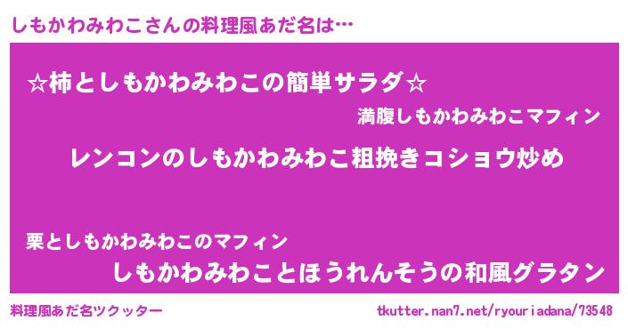 | ヘコむあだ名 | 『しもかわみわこ(震え声)』『豆乳』 |