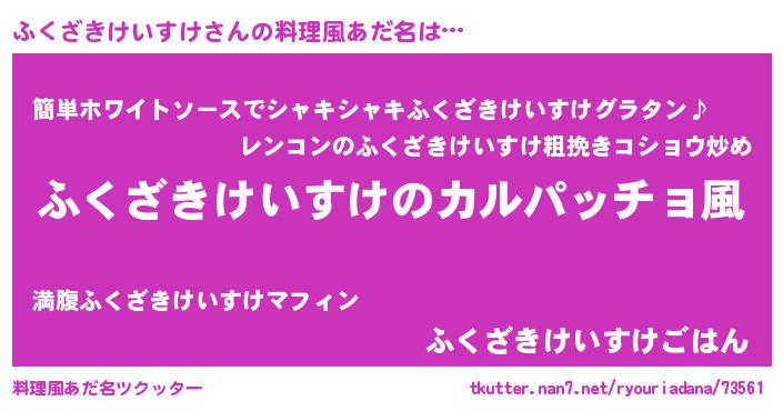 | 意味不明あだ名 | 『住所不定無職ふくざきけいすけ(77歳)』 |